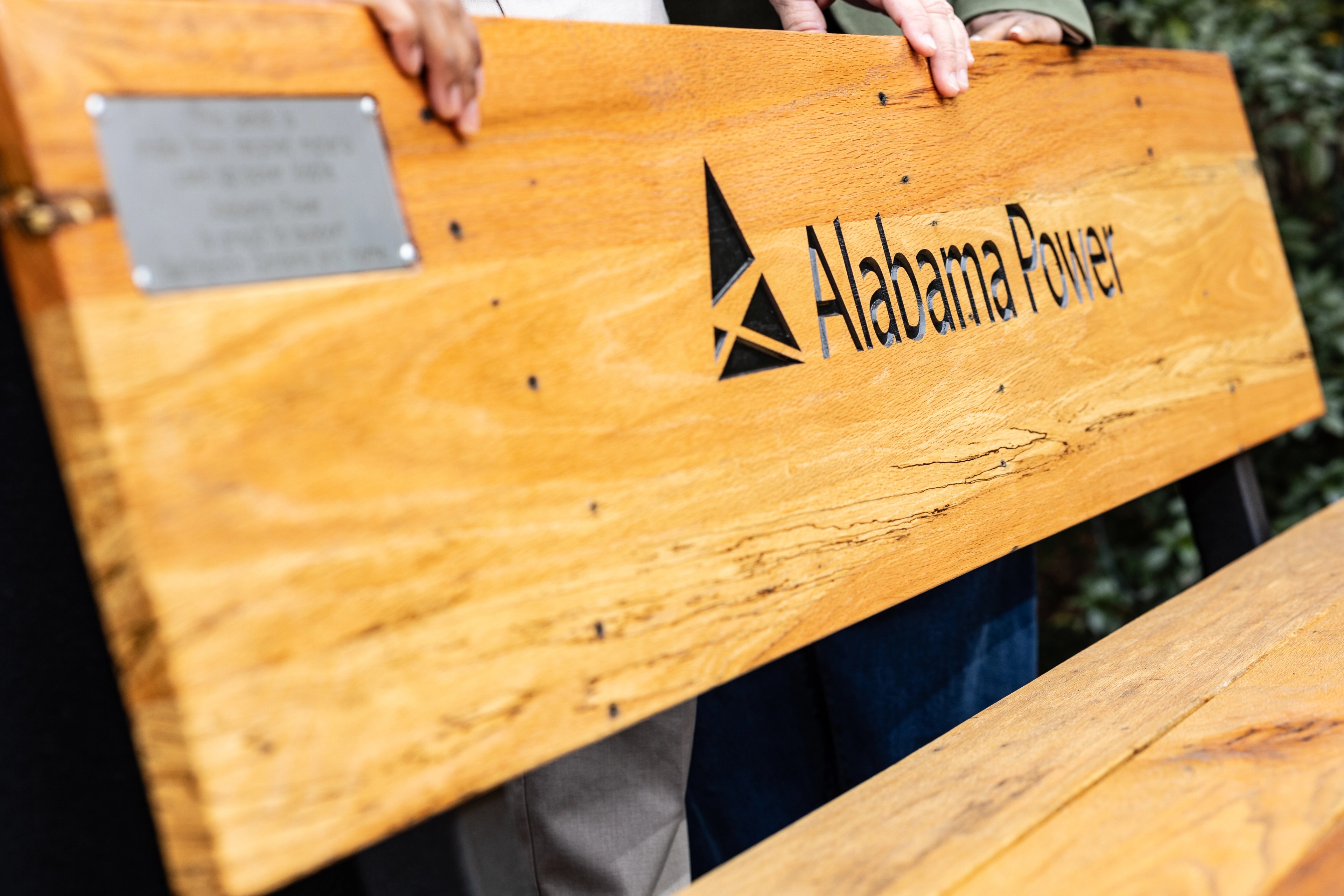 Alabama Power General Shops crafted a bench from recycled materials and worked with the Alabama Power Foundation and the Alabama Power Mobile Division to donate the bench to Bellingrath Gardens in Theodore. (FusionPoint Media)